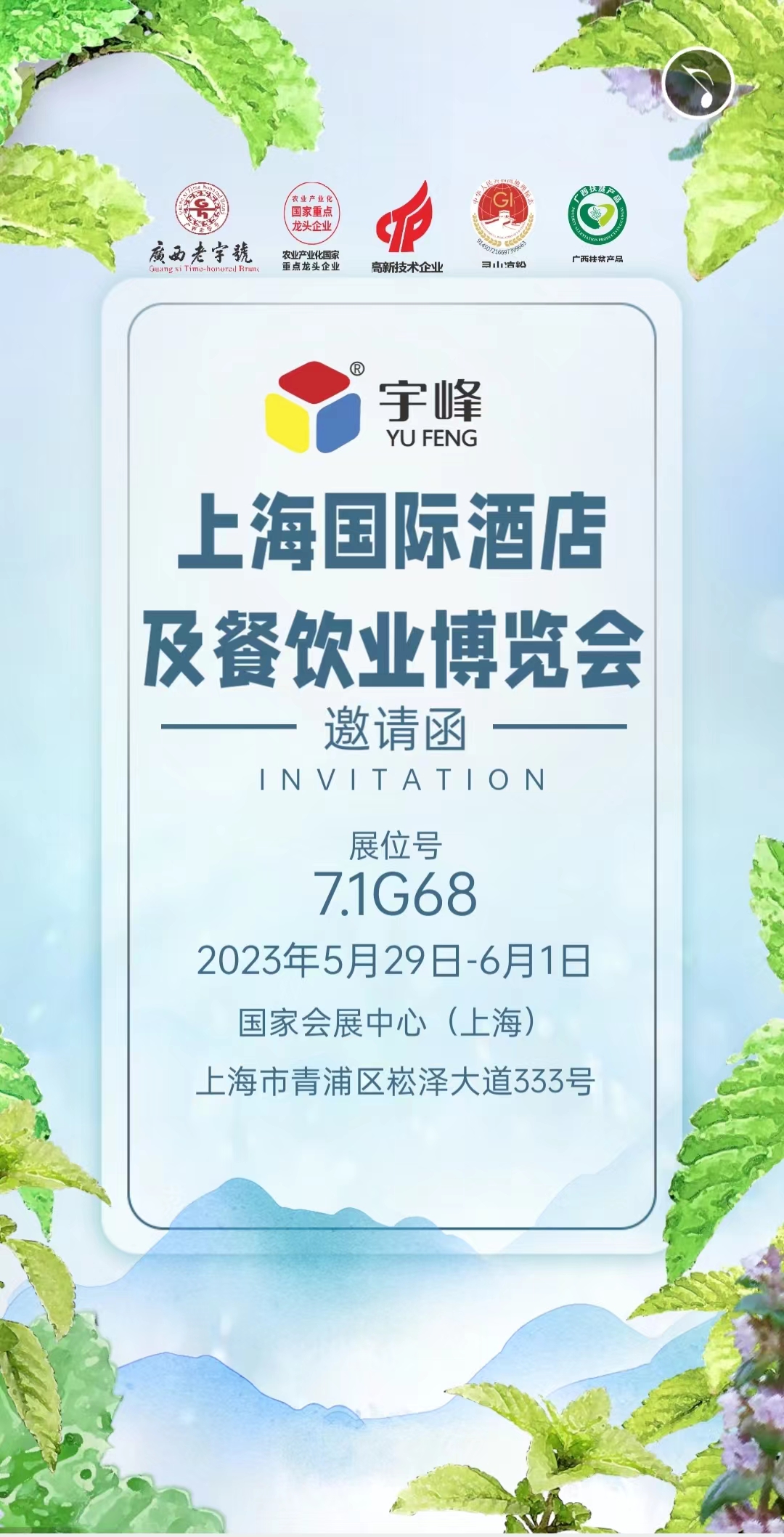 上海國(guó)際酒店及餐飲業(yè)博覽會(huì),展位:7.1G68,2023年5月29日—6月1日,國(guó)際會(huì)展中心(上海),上海市青浦區(qū)崧澤大道333號(hào)